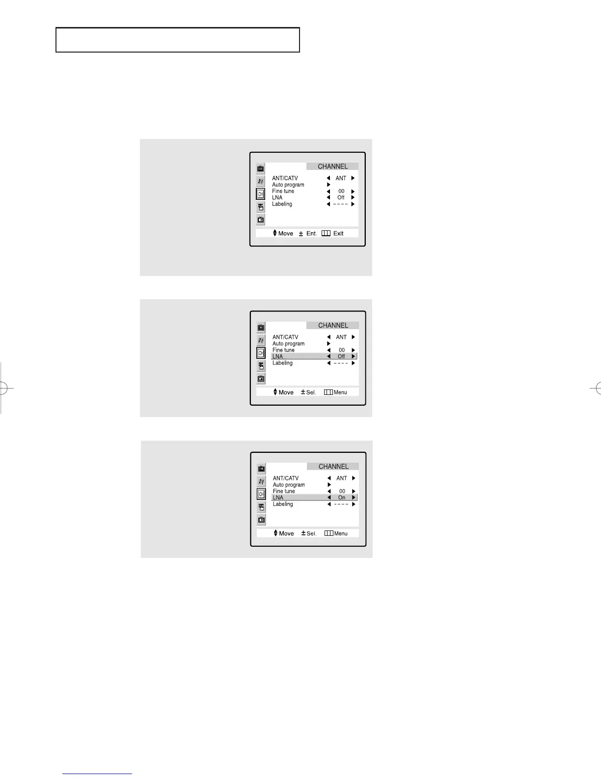 If the TV is operating in a weak-signal area, sometimes the LNA function can improve