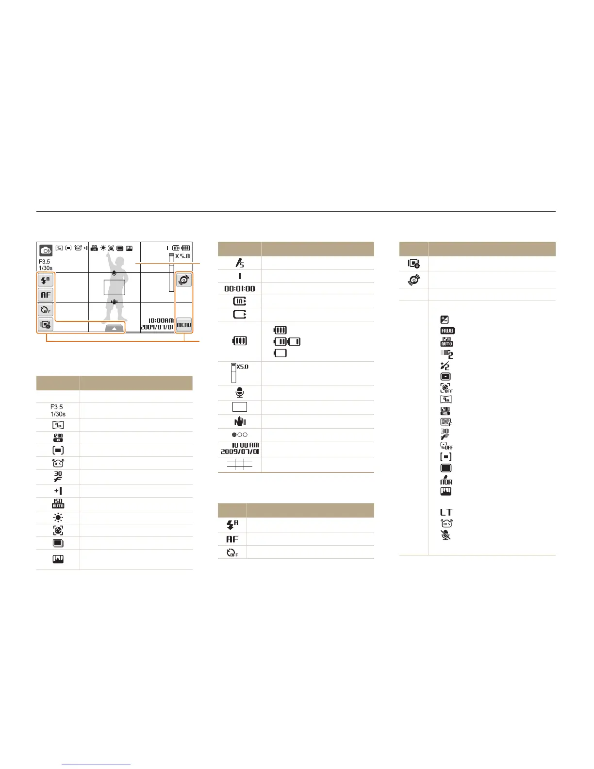 The icons displayed will change according to the mode you select or the options you set.