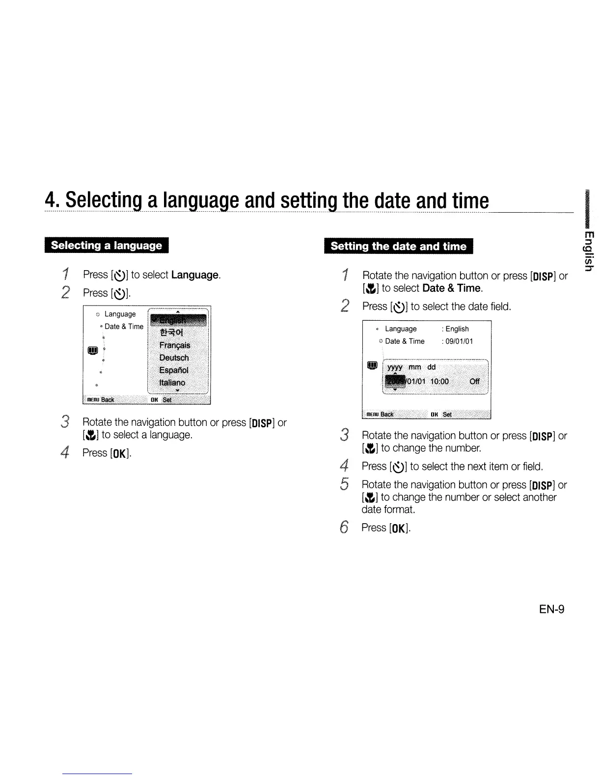Setting the date and time