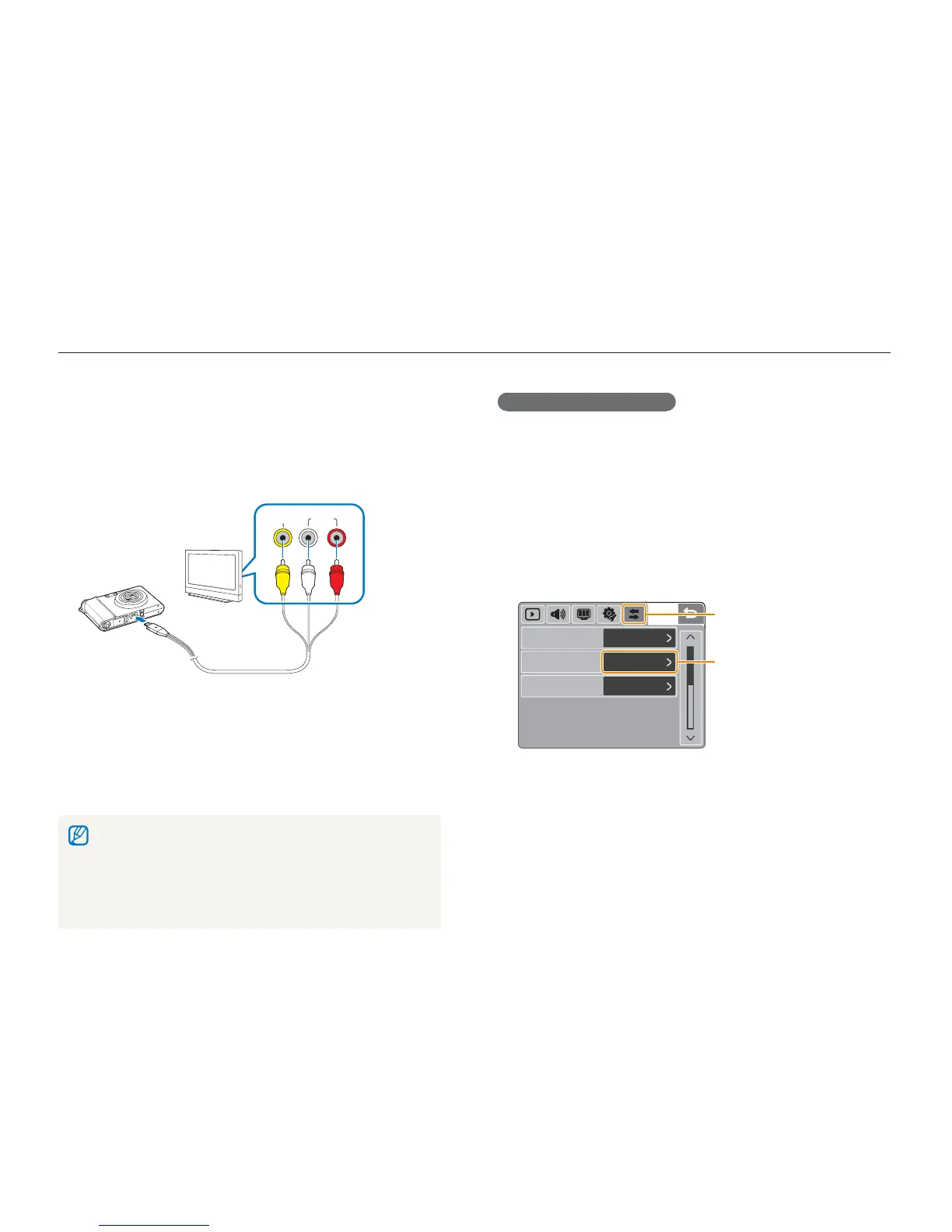 Reproduzca fotografías o vídeos mediante la conexión de la cámara a una TV con el cable A/V suministrado.