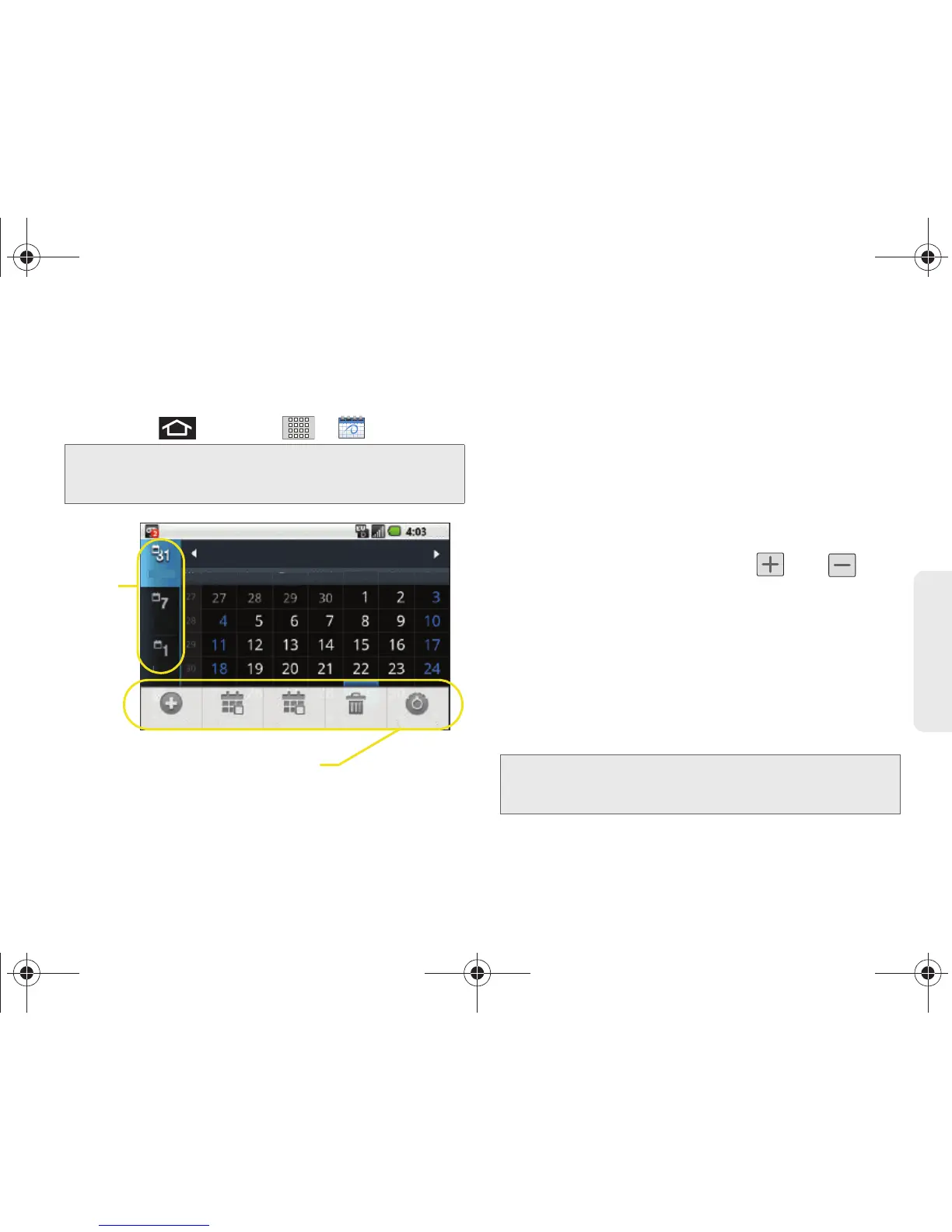 horizontal) de la pantalla del calendario. Elige entre