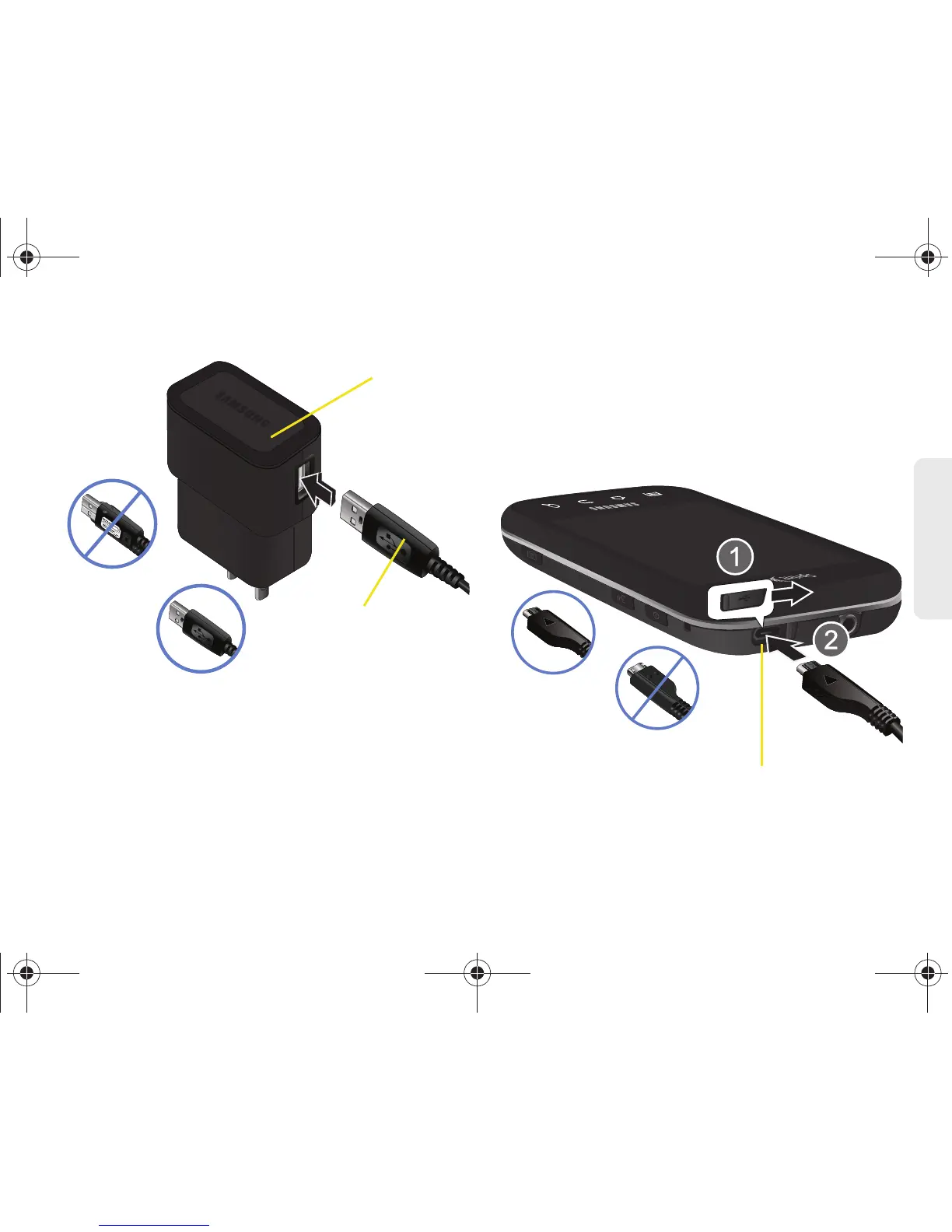 Enchufa el extremo plano del cargador en el conector