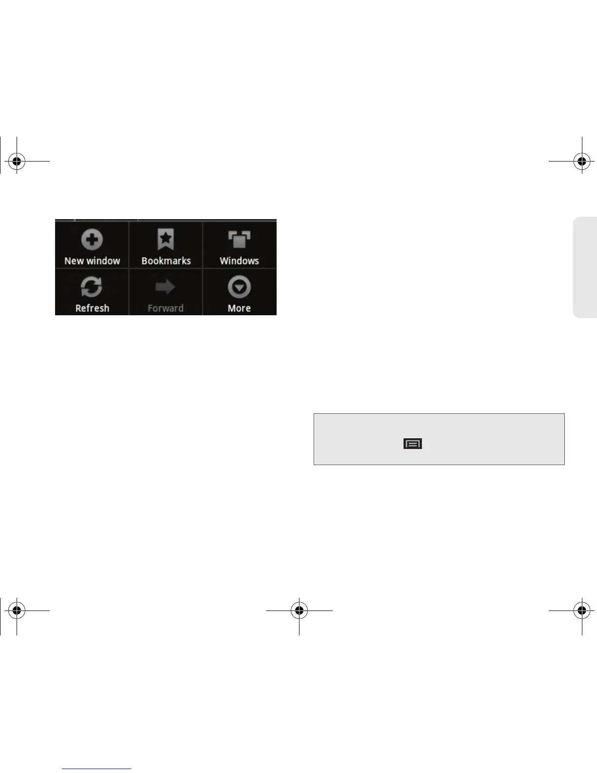 䡲 Add bookmark (Menu+a): Assigns the current Web