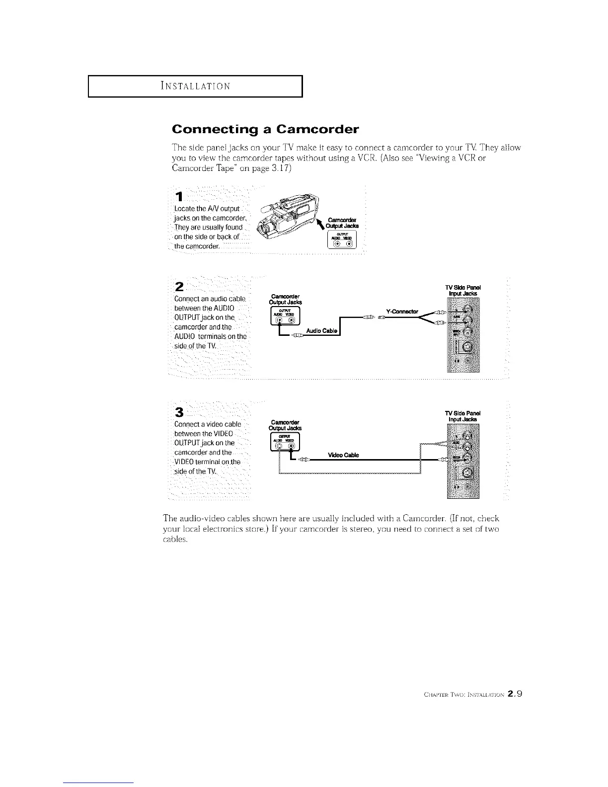 your local electronics store.) If your camcorder is stereo, you need to connect a set of' two