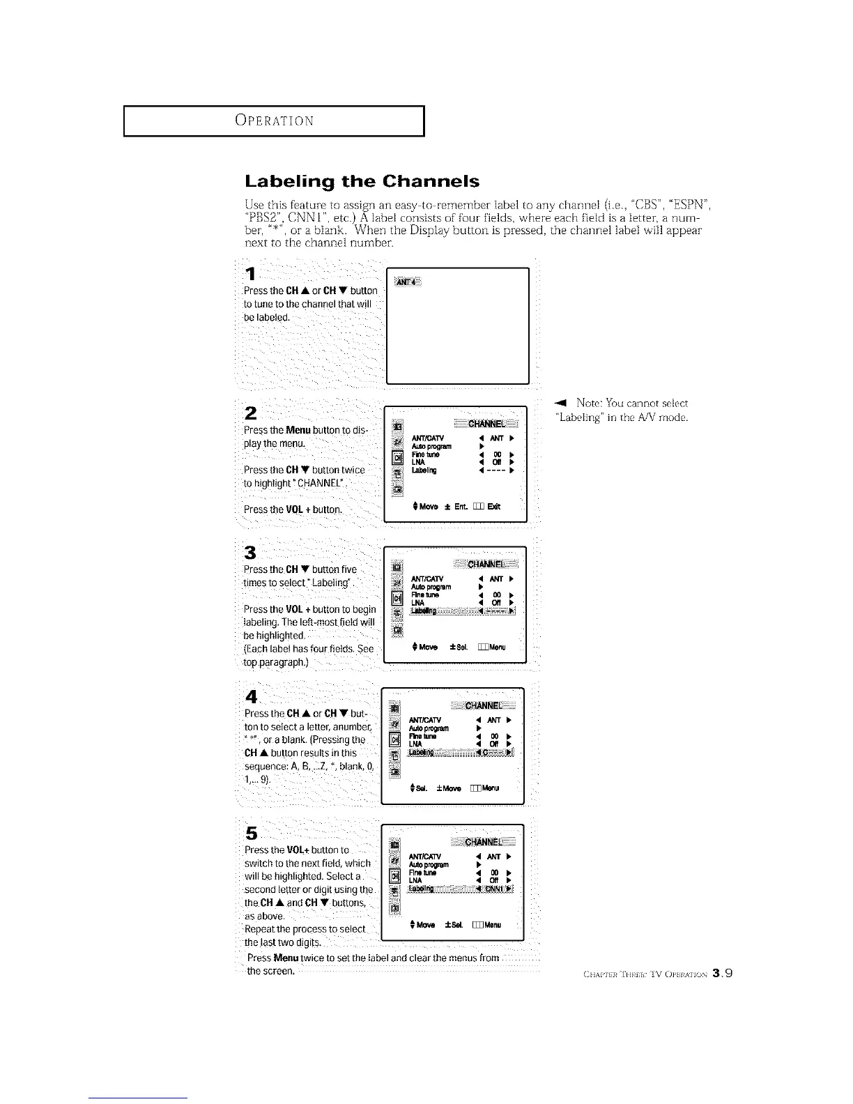 ber, "_", or a blank. When the Display button is pressed, the channel labeJ will appear