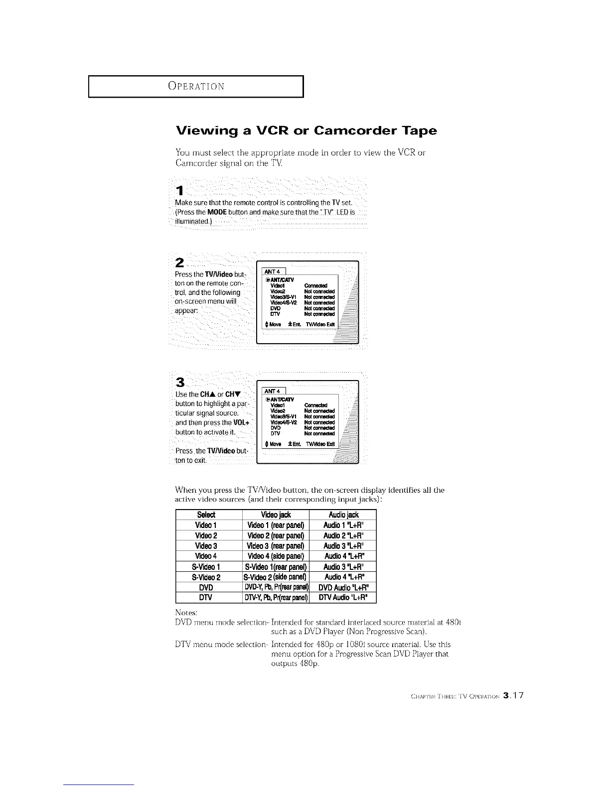 DTV menu mode selection Intended fbr 480p or 1080i source material. Use this