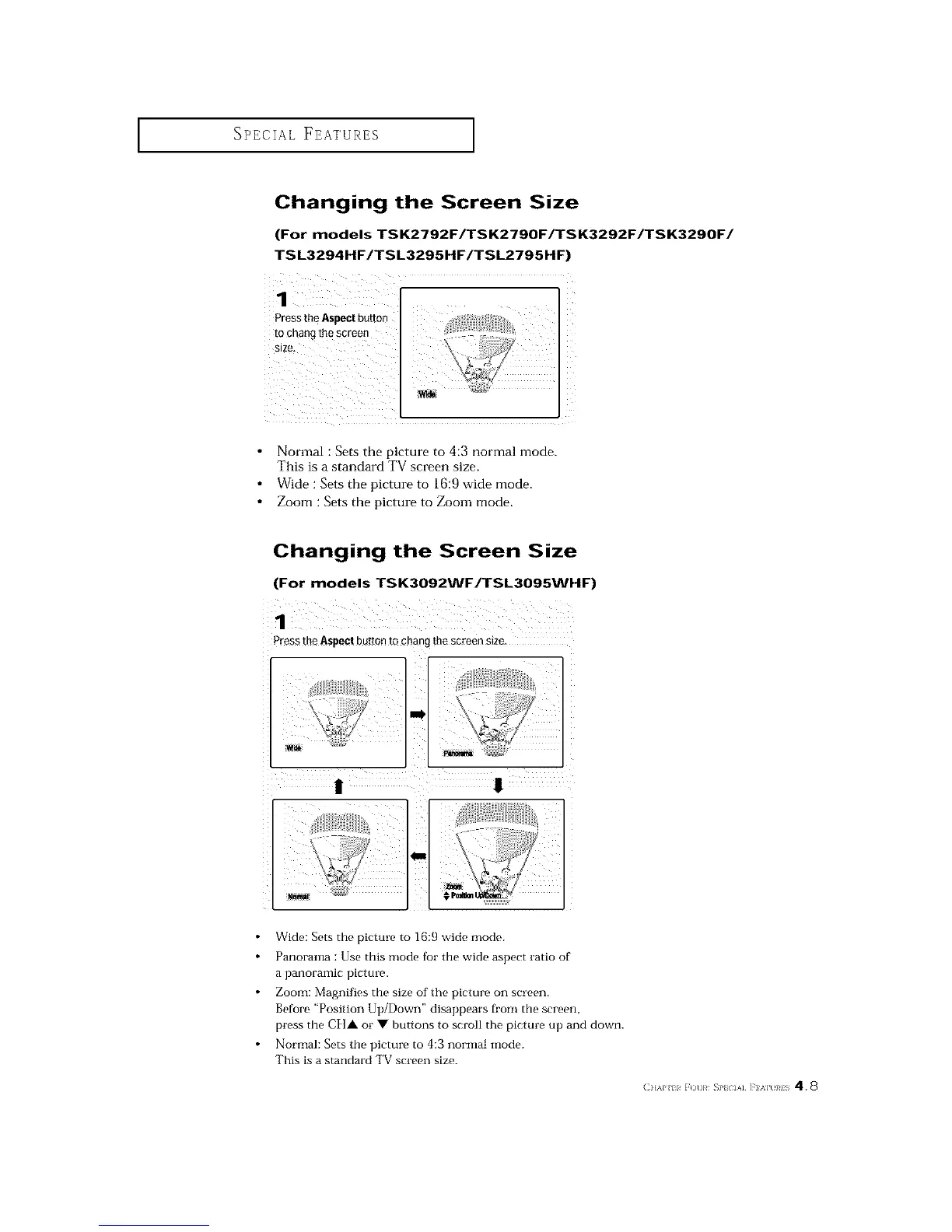 Press the Aspect buttonto chang me screen s_ze
