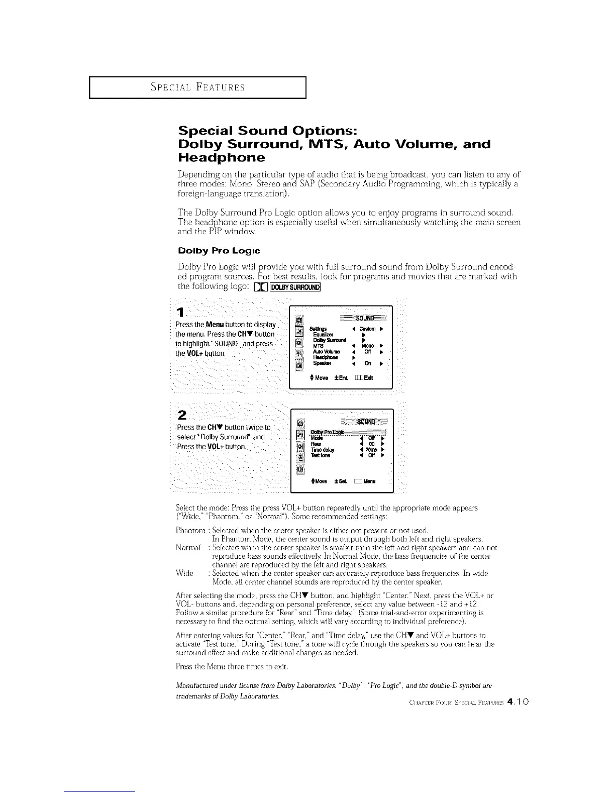 Dolby Surround, MTS, Auto Volume, and