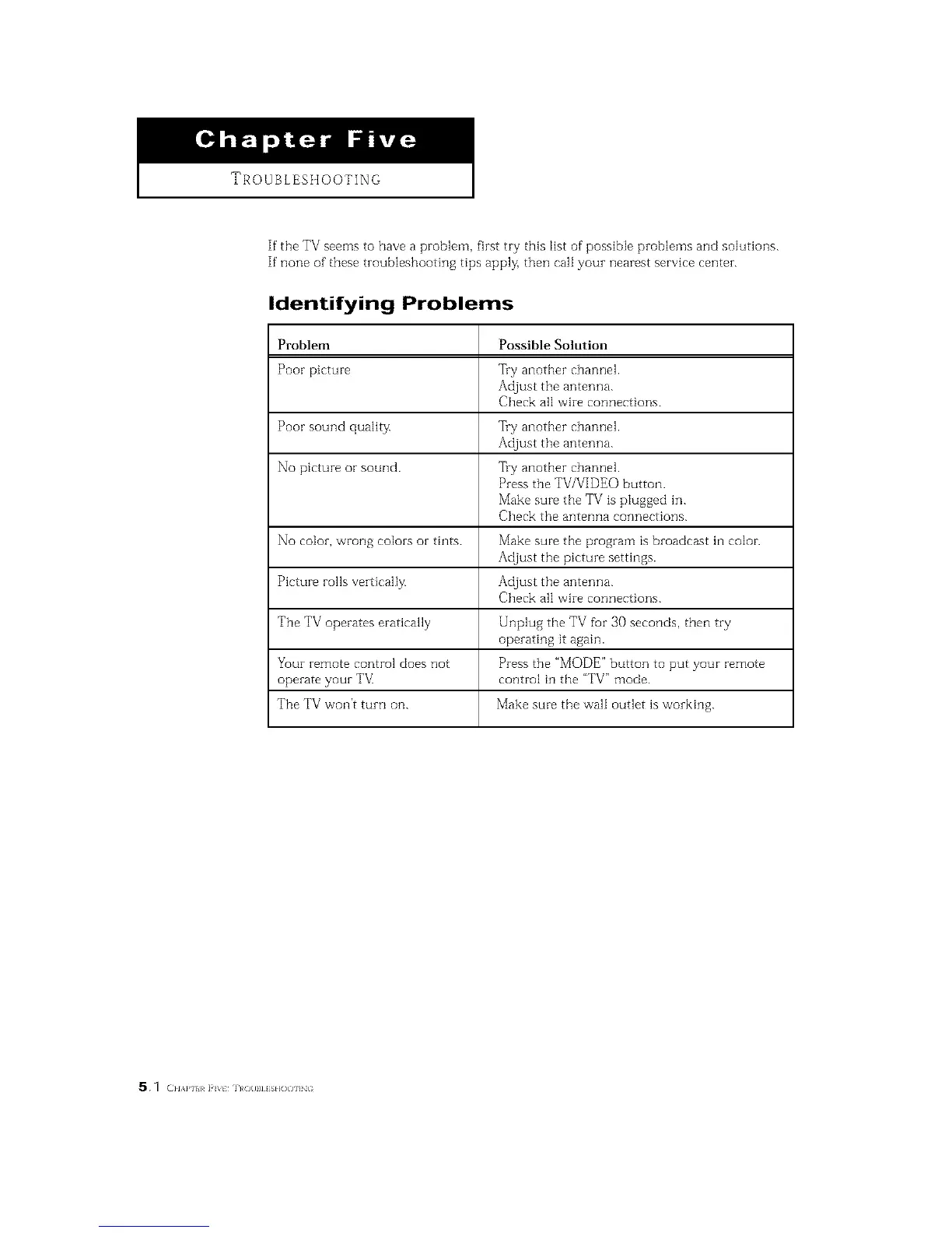 If the TV seems to have a problem, first try this list of possible problems and solutions.