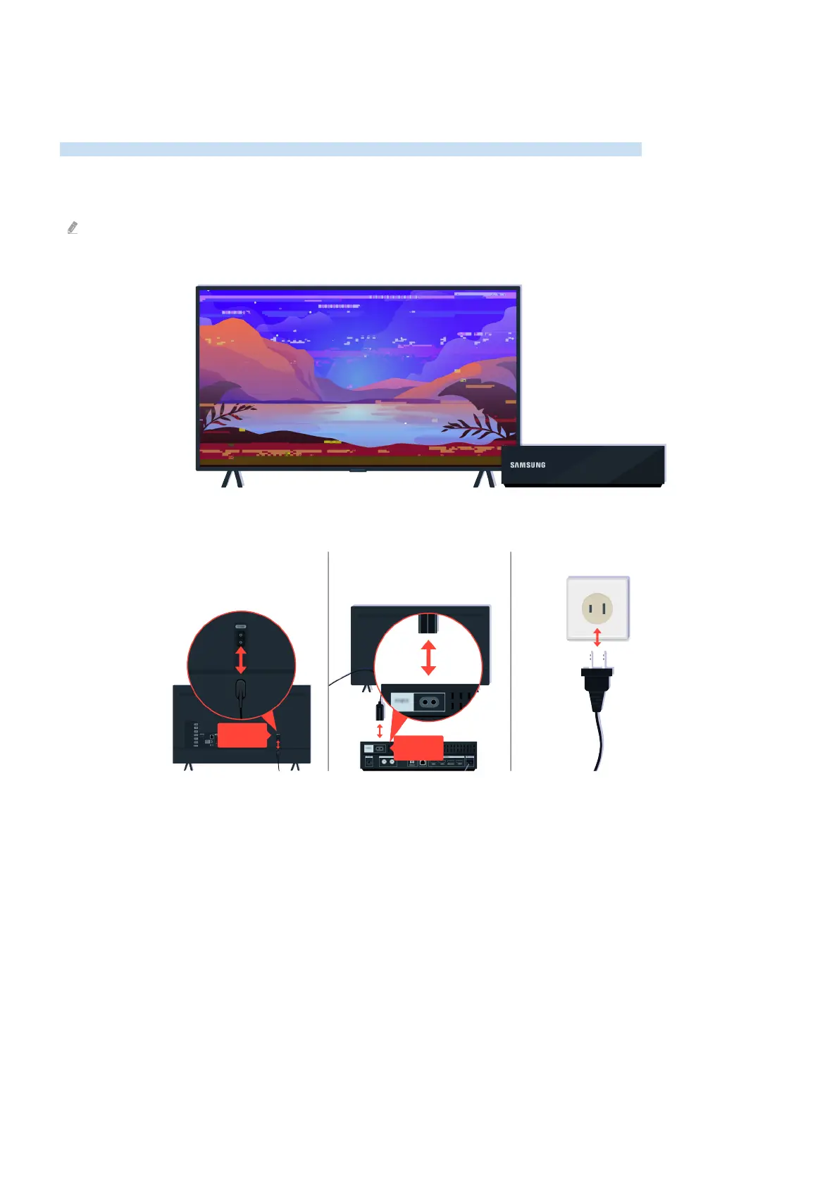 First disconnect and reconnect the power cables and HDMI cables on the back of your TV or the One Connect (OC)