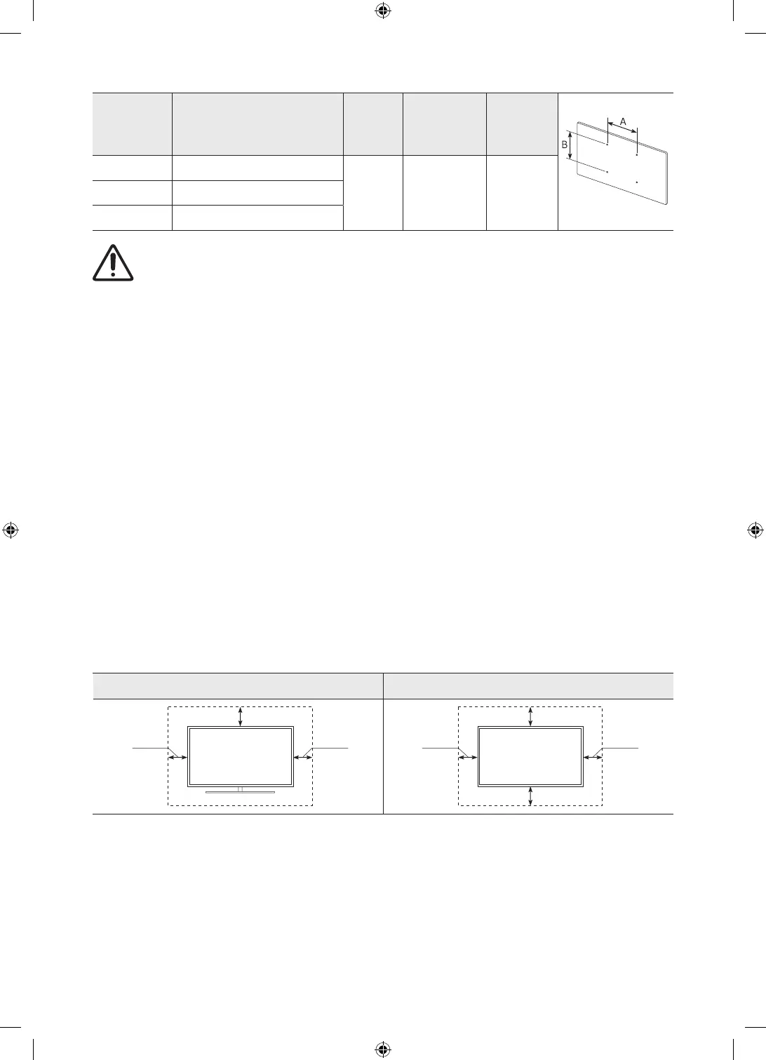 • Per sistemi di montaggio a parete non conformi allo standard VESA, la lunghezza delle viti potrebbe