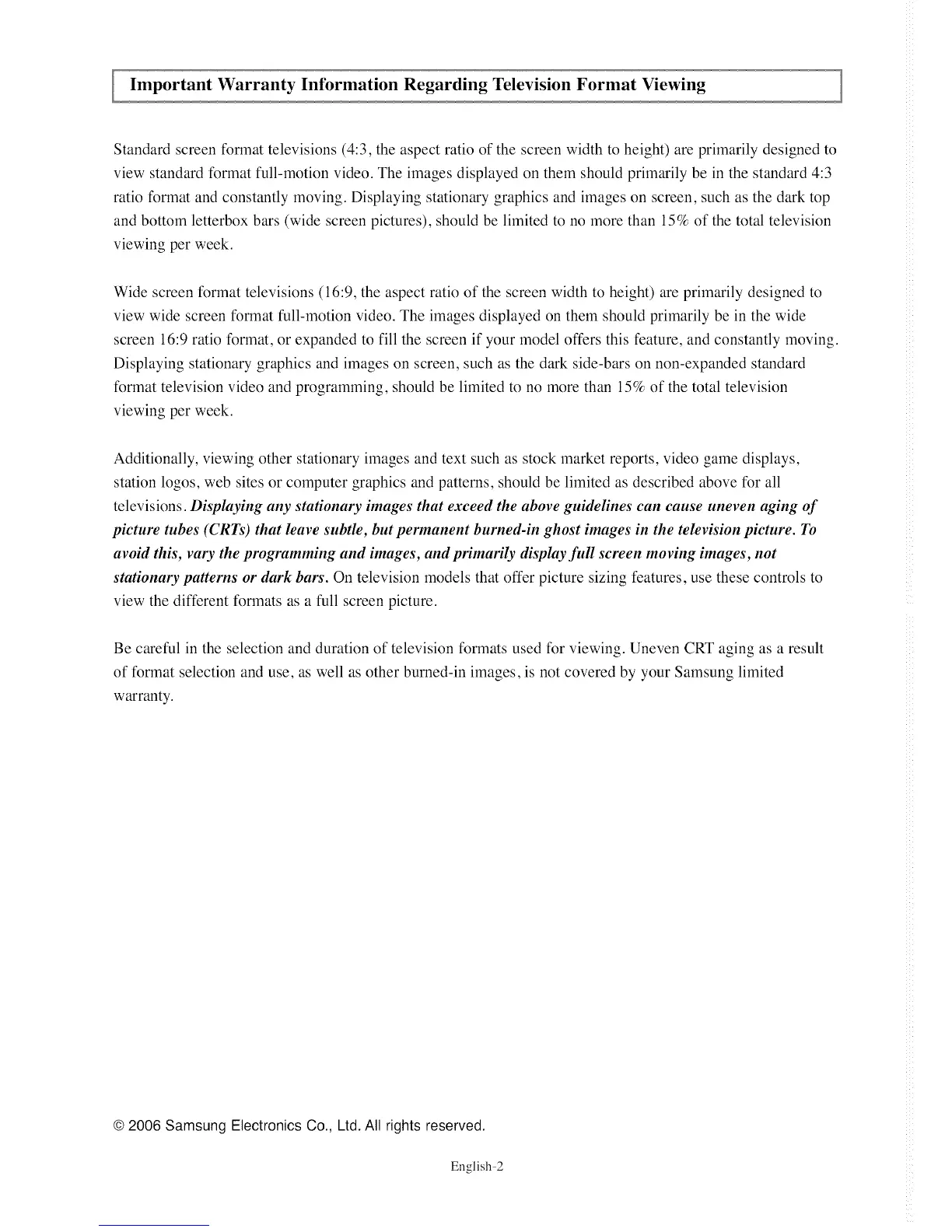 Important Warranty Infiwmation Regarding Television Format Viewing