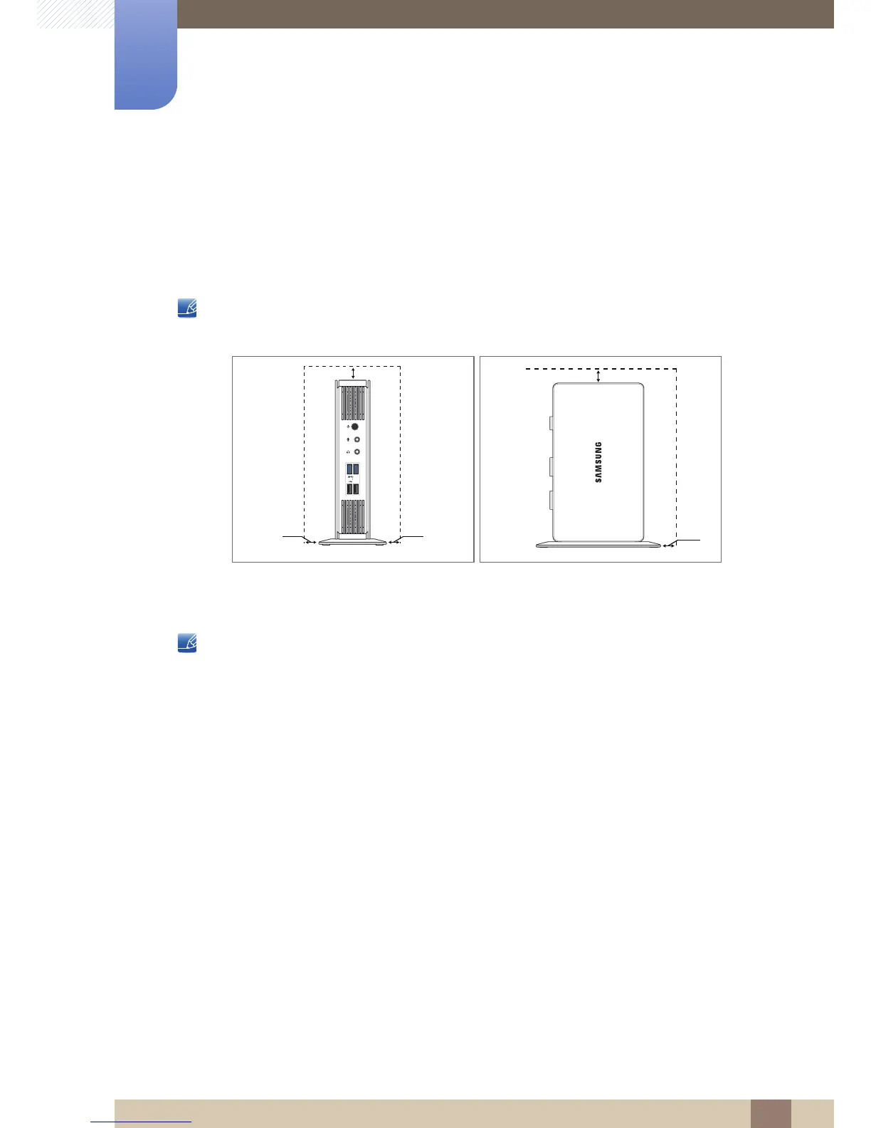 damage the product. Be sure to allow the amount of space as shown below or greater when installing