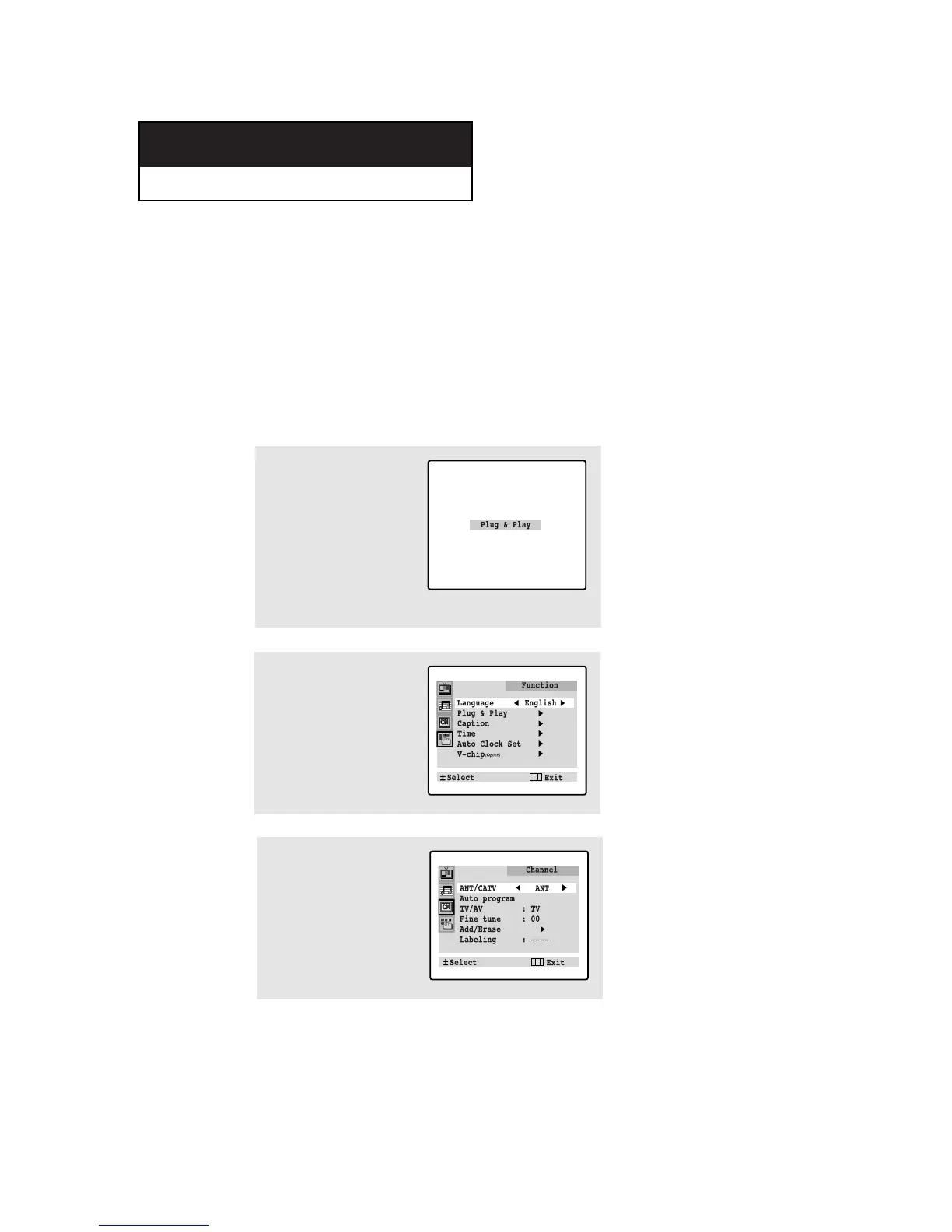 subsequently: Setting the language, Video signal source, Ant. input check, Auto program