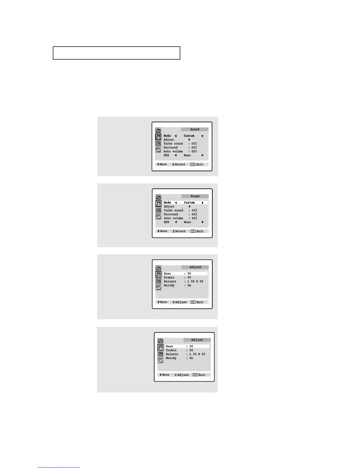 You can use the on-screen menus to adjust the bass, treble, and balance according to