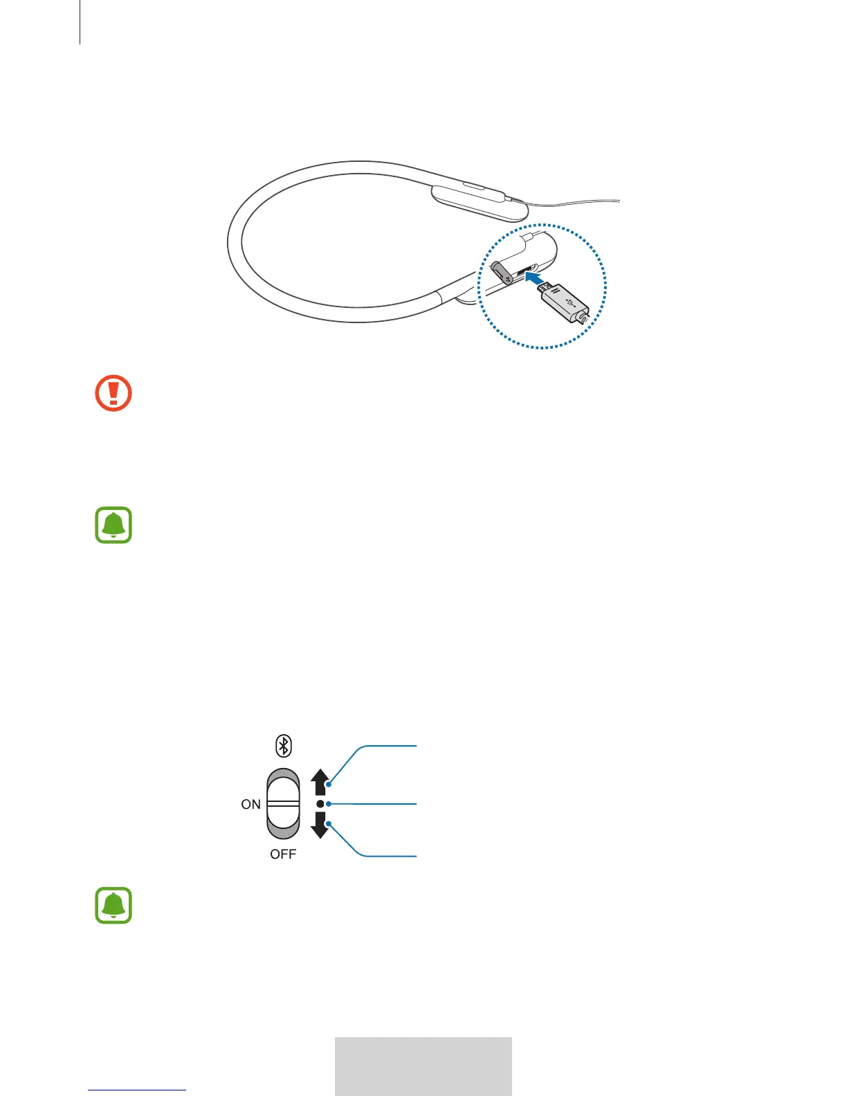 Deschideți capacul portului de încărcare. Conectați căștile la adaptorul USB folosind