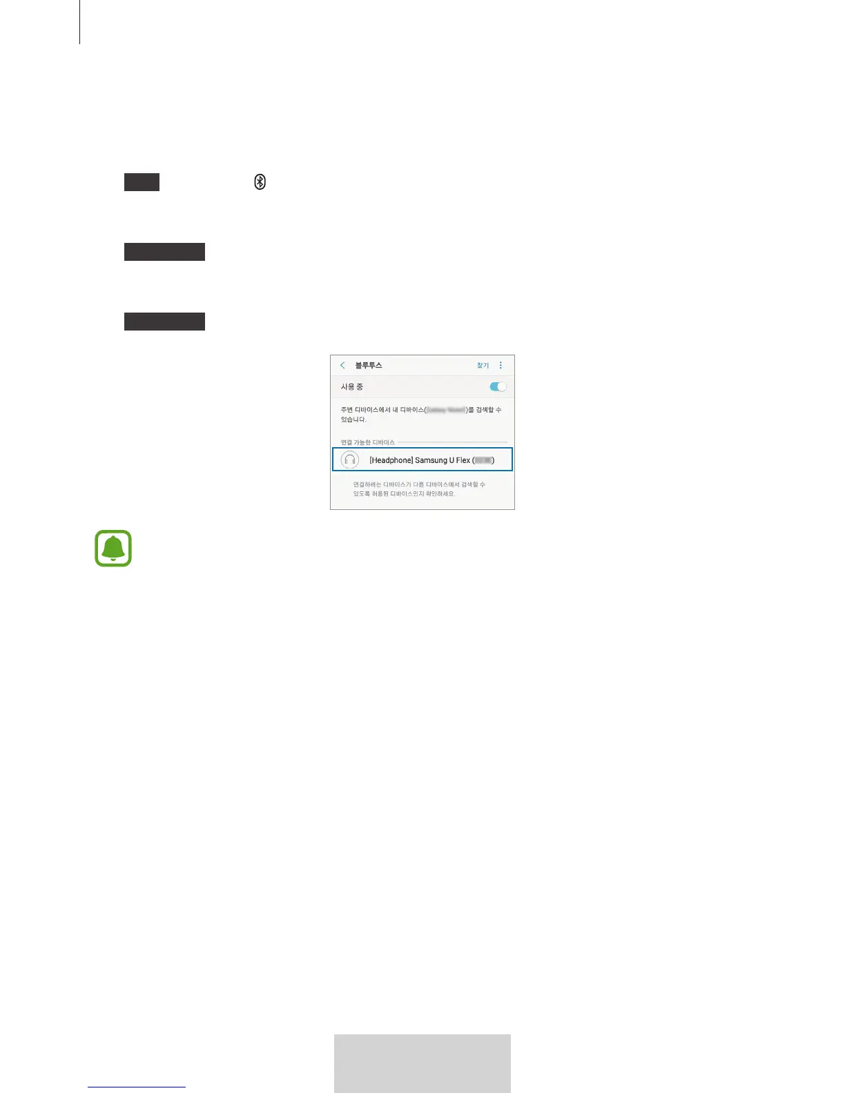 연결할 기기 검색된 기기 목록에서 Samsung U Flex (0000)를 선택해 연결을 완료하세요.