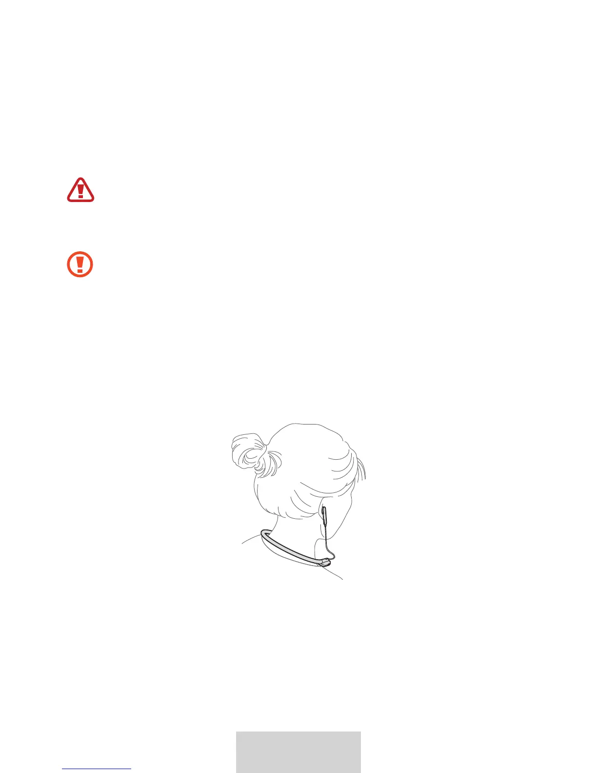제품을 목에 착용하고 이어폰을 귀에 끼운 상태입니다.