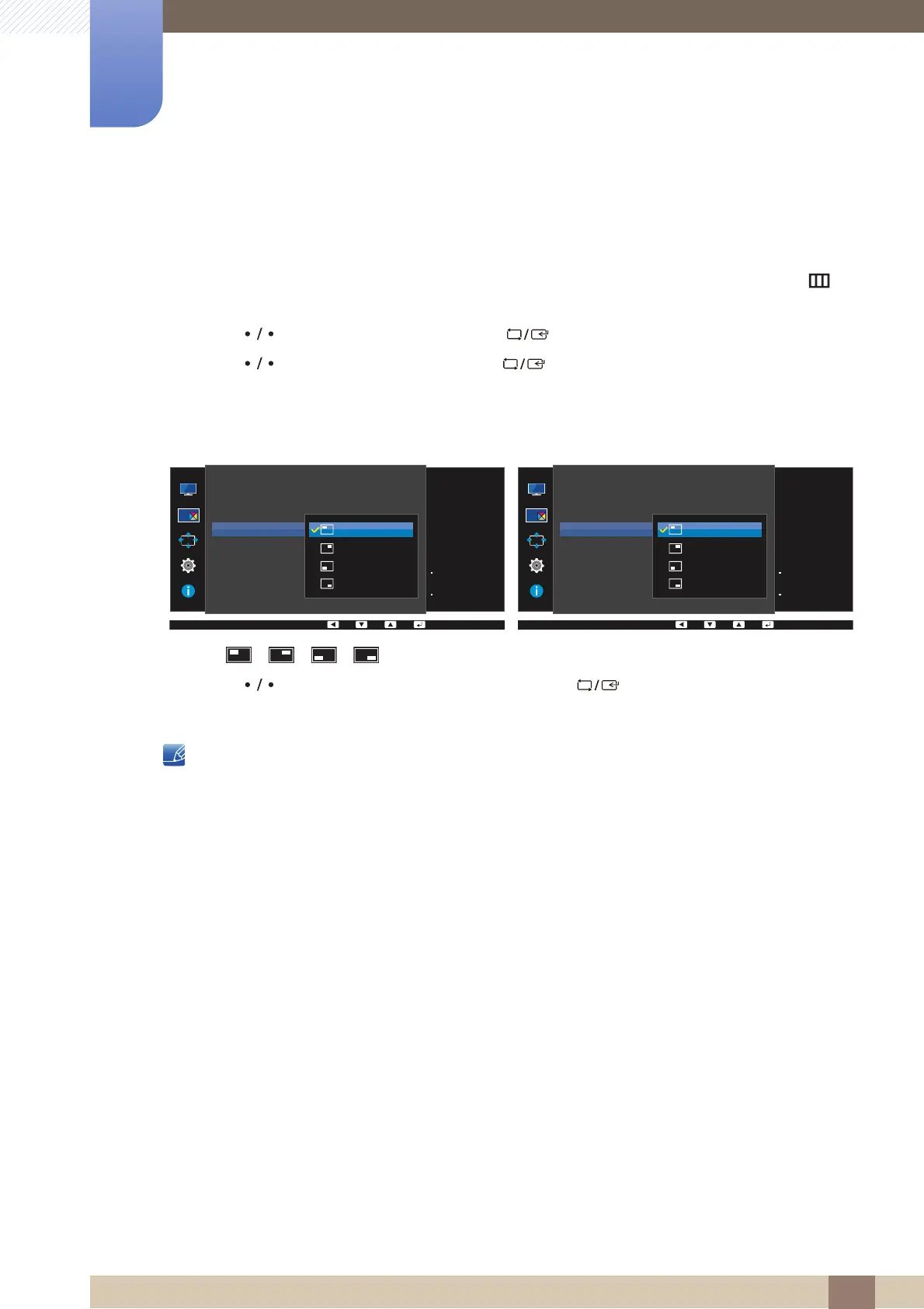 2 Press [ ] to move to PIP/PBP and press [ ] on the product.