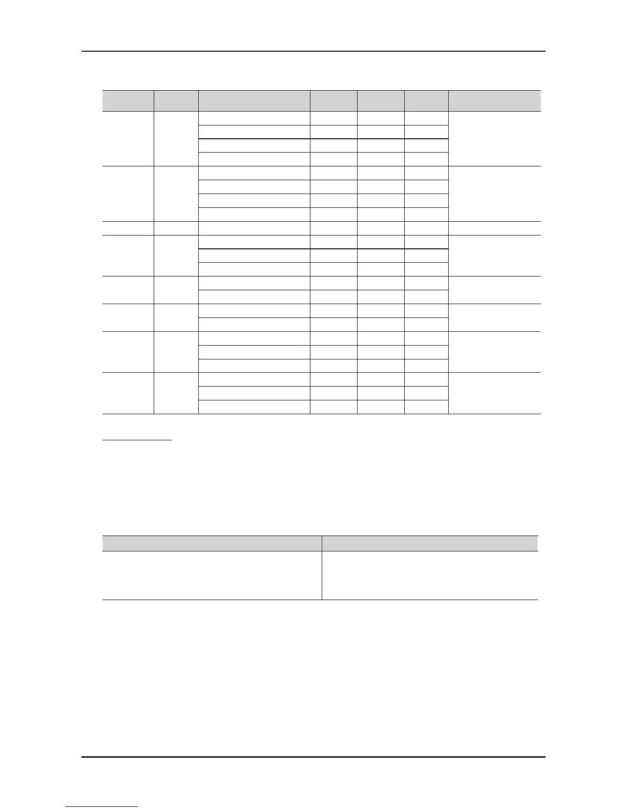 listed in the table above.