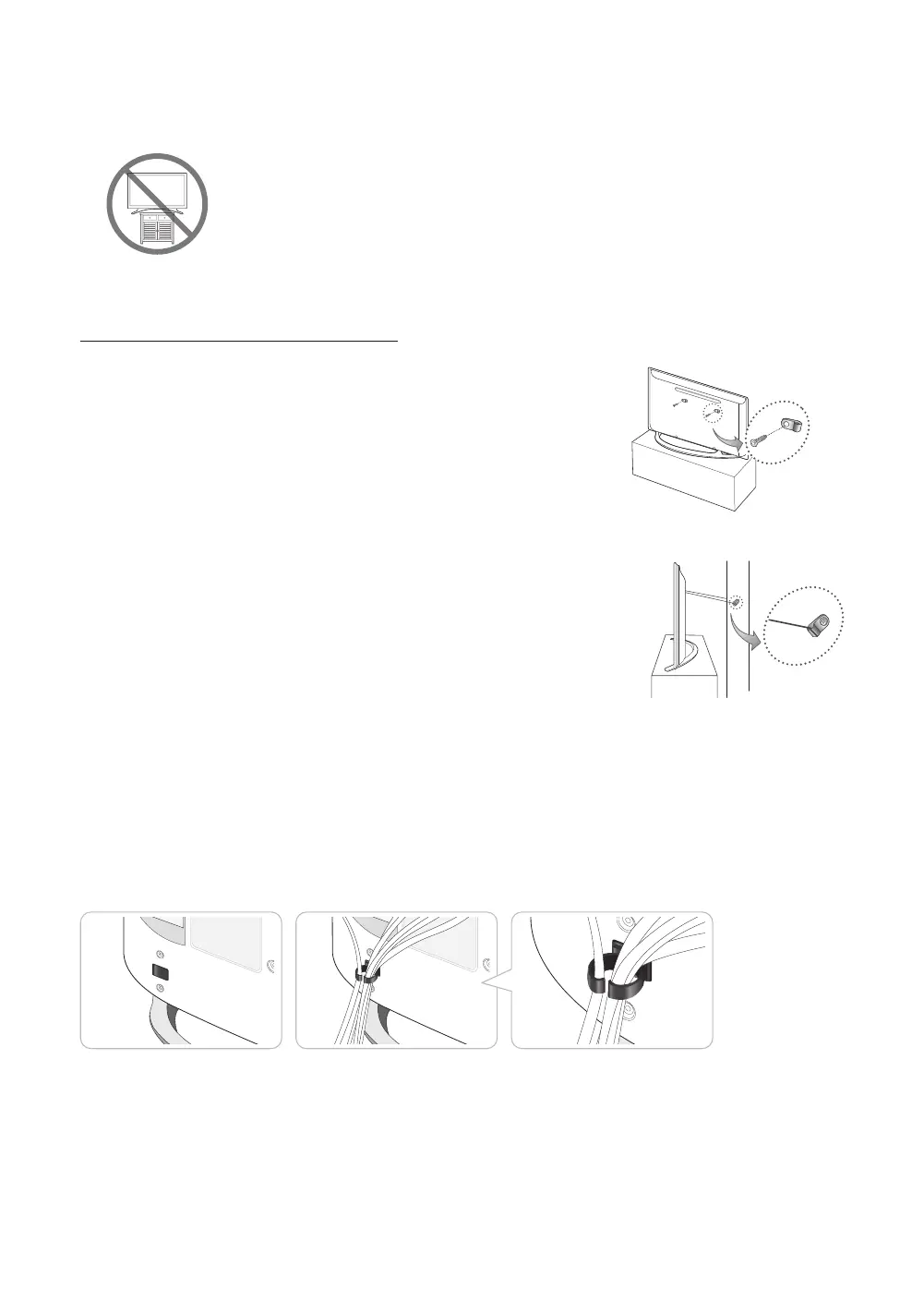 - Install the TV close to the wall so that it does not fall backwards.