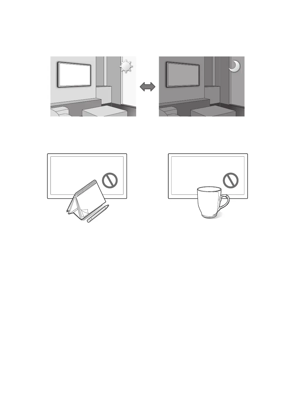Do not block the sensor with any material. This may decrease the picture brightness.