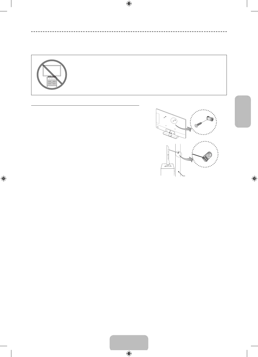 • Задля безпеки протягніть шнурок так, щоб скоби на стіні були на рівні або нижче скоб на телевізорі.