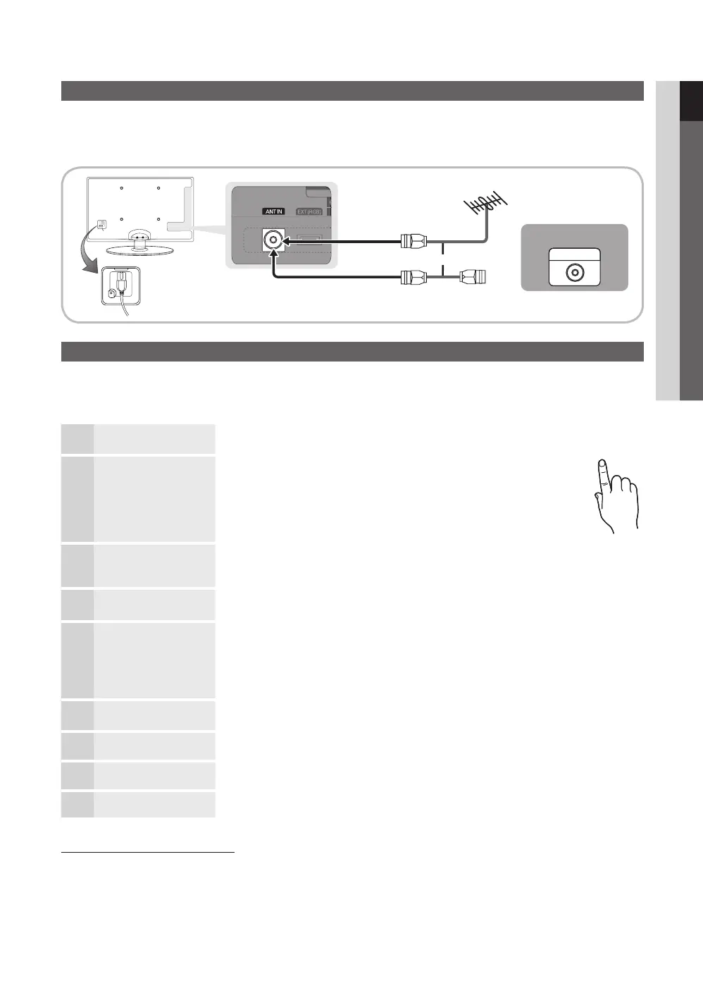 Select the channel source to memorise. When setting the antenna source to Cable, a step