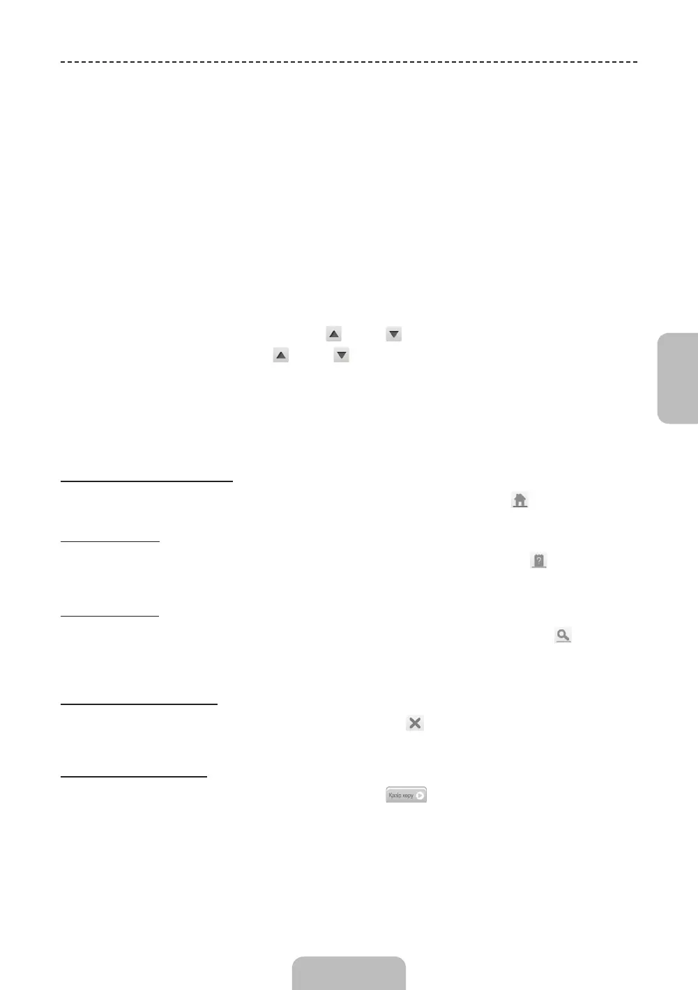 Көк сөздер бейнебет мәзірінің функцияларын көрсетеді және ақ көк сөздер қашықтан басқару
