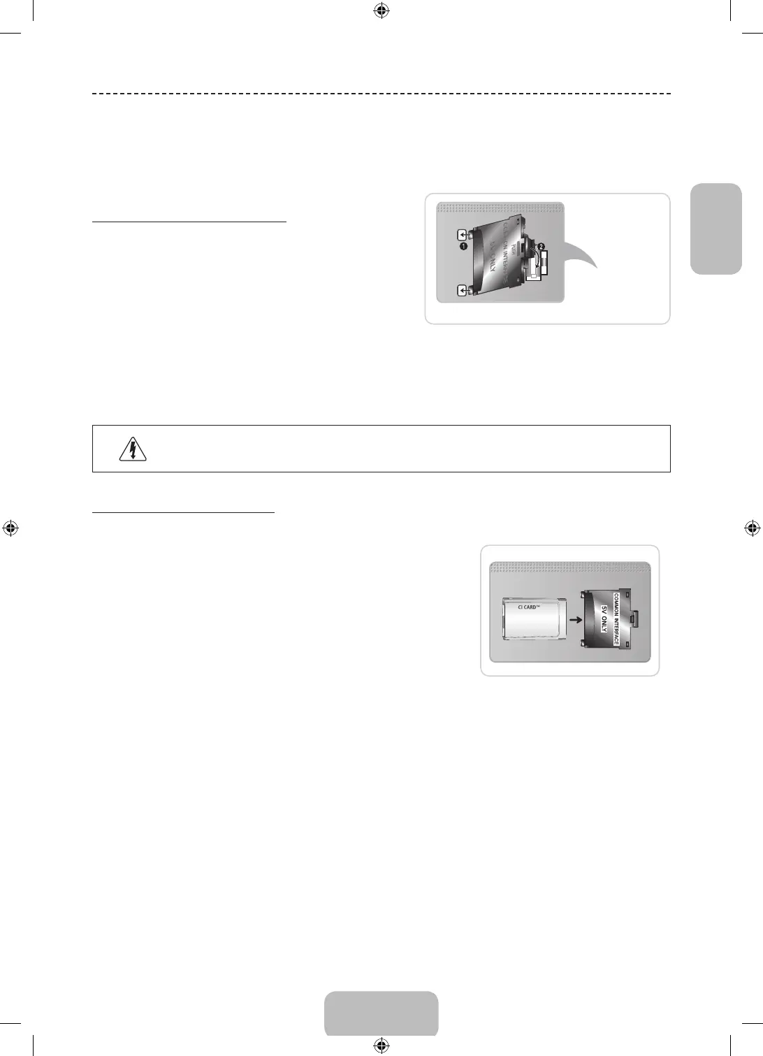 • Insert the “CI or CI+ CARD” that supports the current aerial settings. The screen will be distorted or will not be