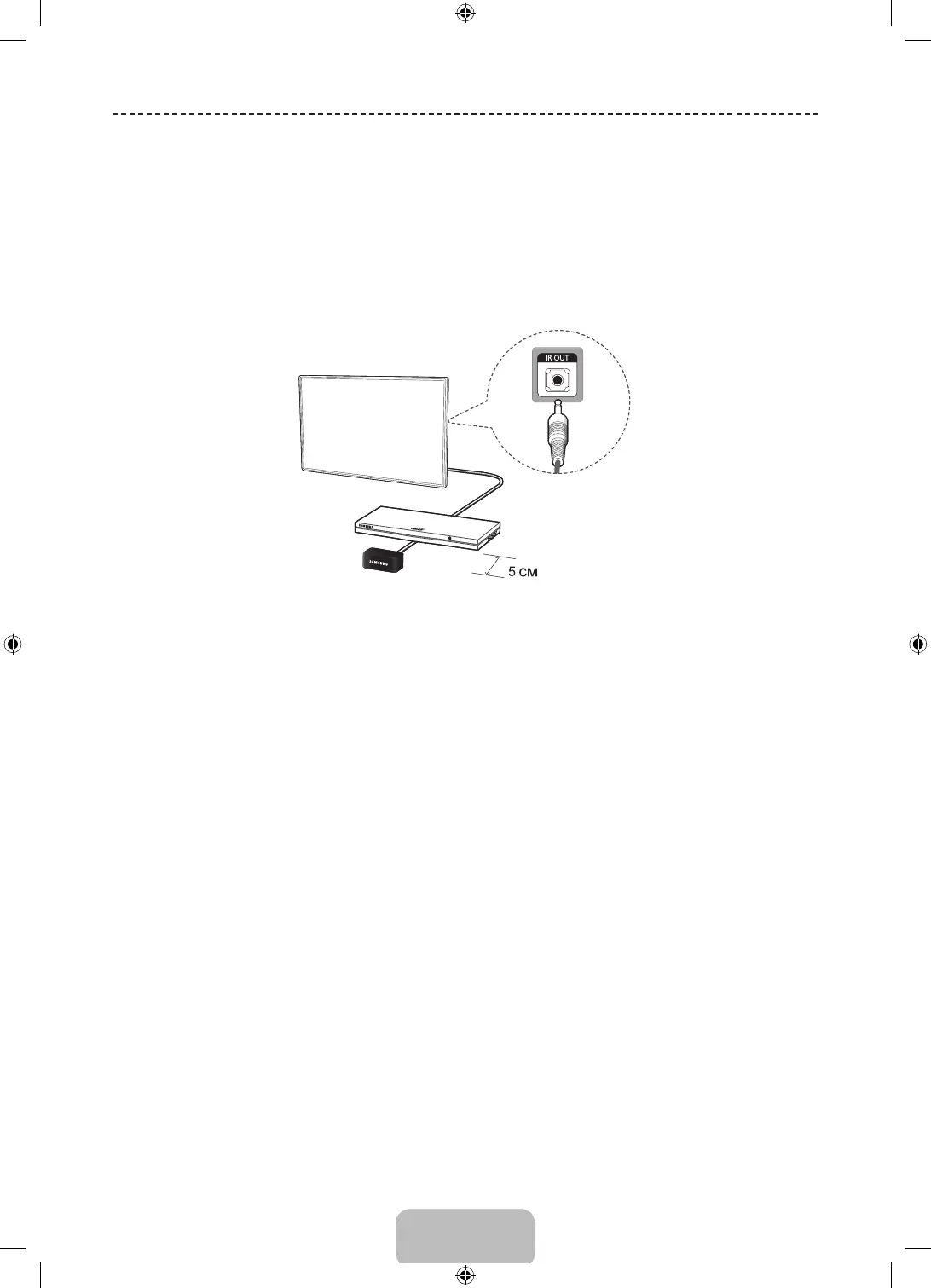 Забезпечте відстань між кабелем-продовжувачем ІЧ сигналів і зовнішнім пристроєм принаймні 5 см, як показано