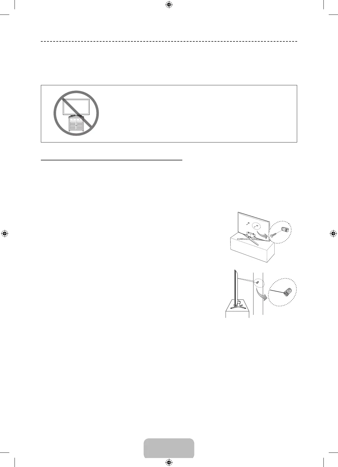 − Встановлюйте телевізор близько до стіни, щоб він не перевернувся