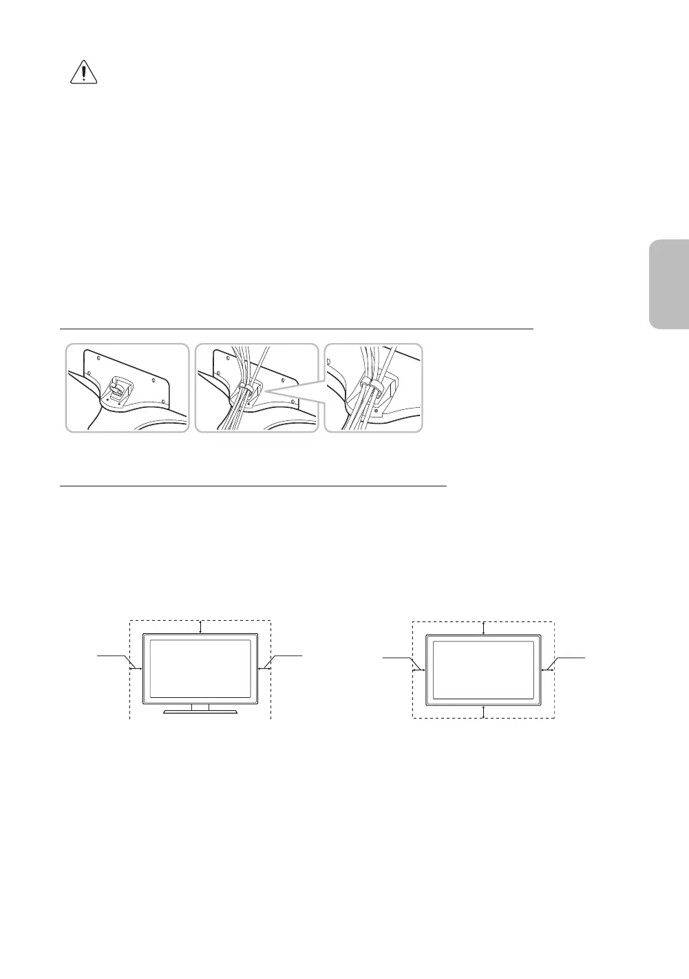 Встановлюючи телевізор, залиште відстань принаймні 10 см між телевізором та іншими предметами (стінами, стінками