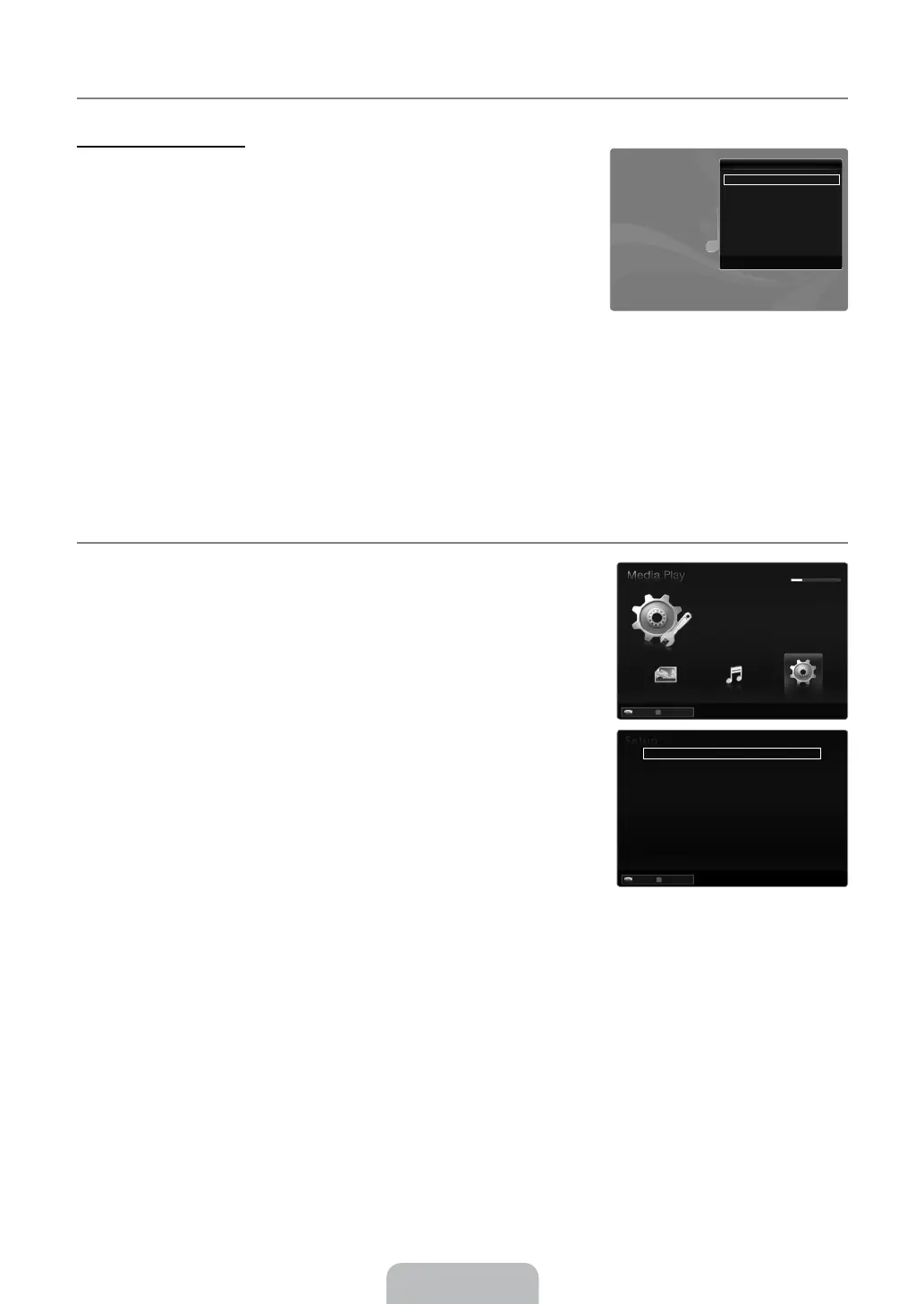 Setup displays the user settings of the Media Play menu.
