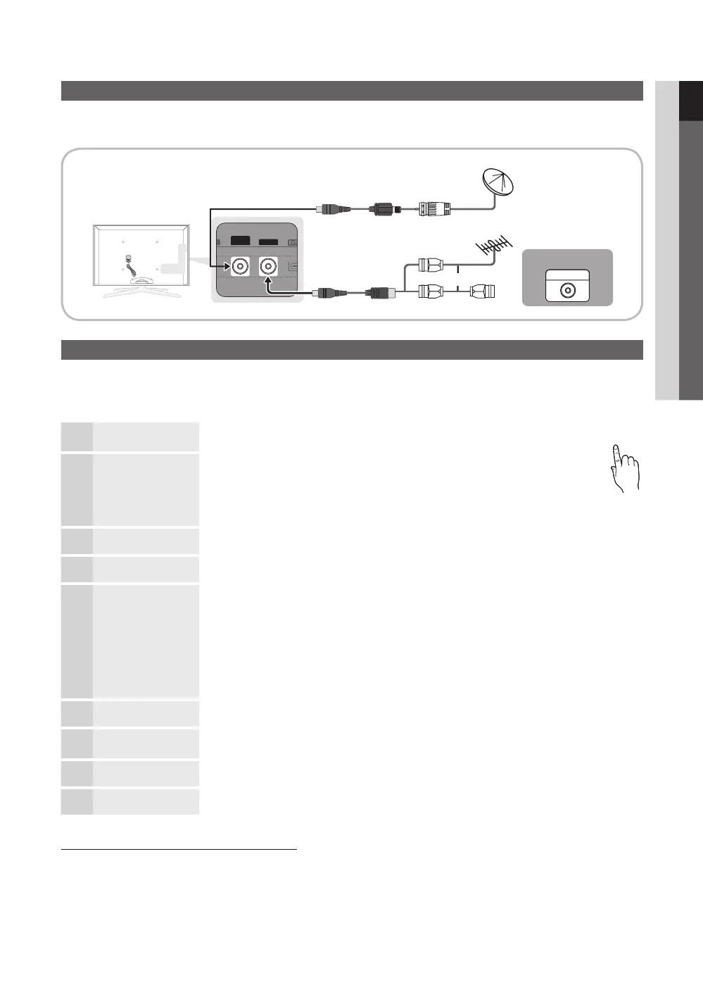 Kun Satelliitti valitaan ensin: Kun kaikki Satelliitti-kanavat on tallennettu, näytölle ilmestyy Antenni- tai Kaapeli-