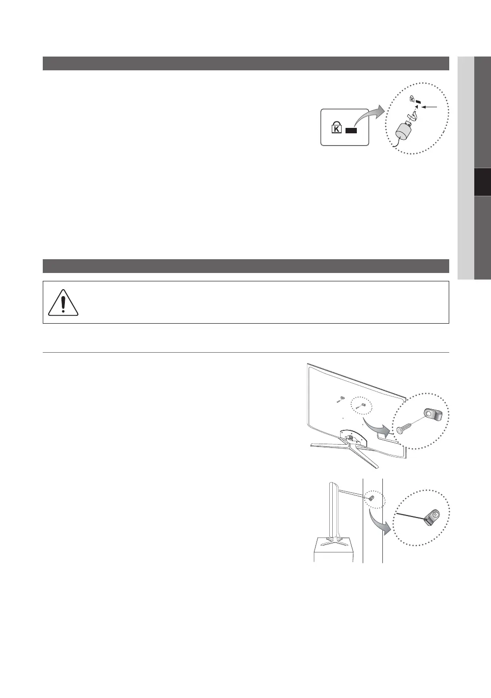 Caution: Pulling, pushing, or climbing onto the TV may cause the TV to fall. In particular, ensure that your