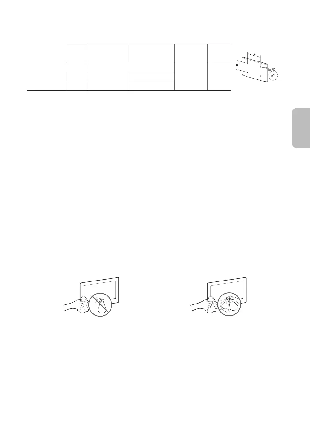 У таблиці нижче наведено стандартні розміри комплектів настінного кріплення. Якщо ви використовуєте настінне