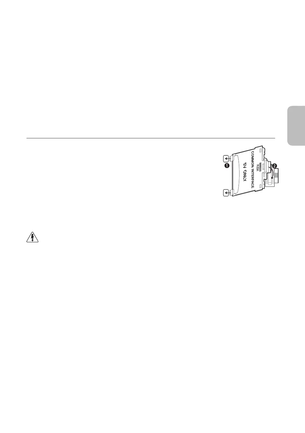 - Вимкніть телевізор, щоб під’єднати або від’єднати адаптер для картки CI чи вставити або вийняти картку CI.