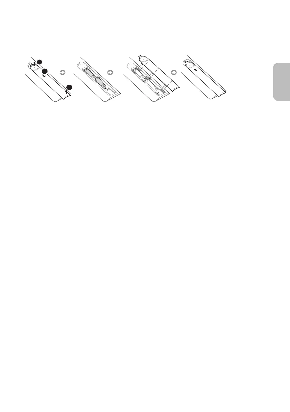 4. Slide the battery cover in the order shown so that the cover is completely attached to the remote control.