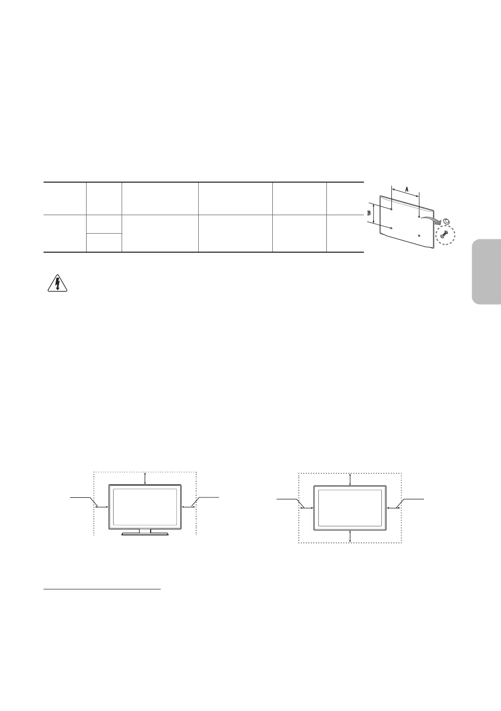 - VESA стандартты бұрандалар спецификациясына сай келмейтін қабырғалық аспа жинақ қолданылса,