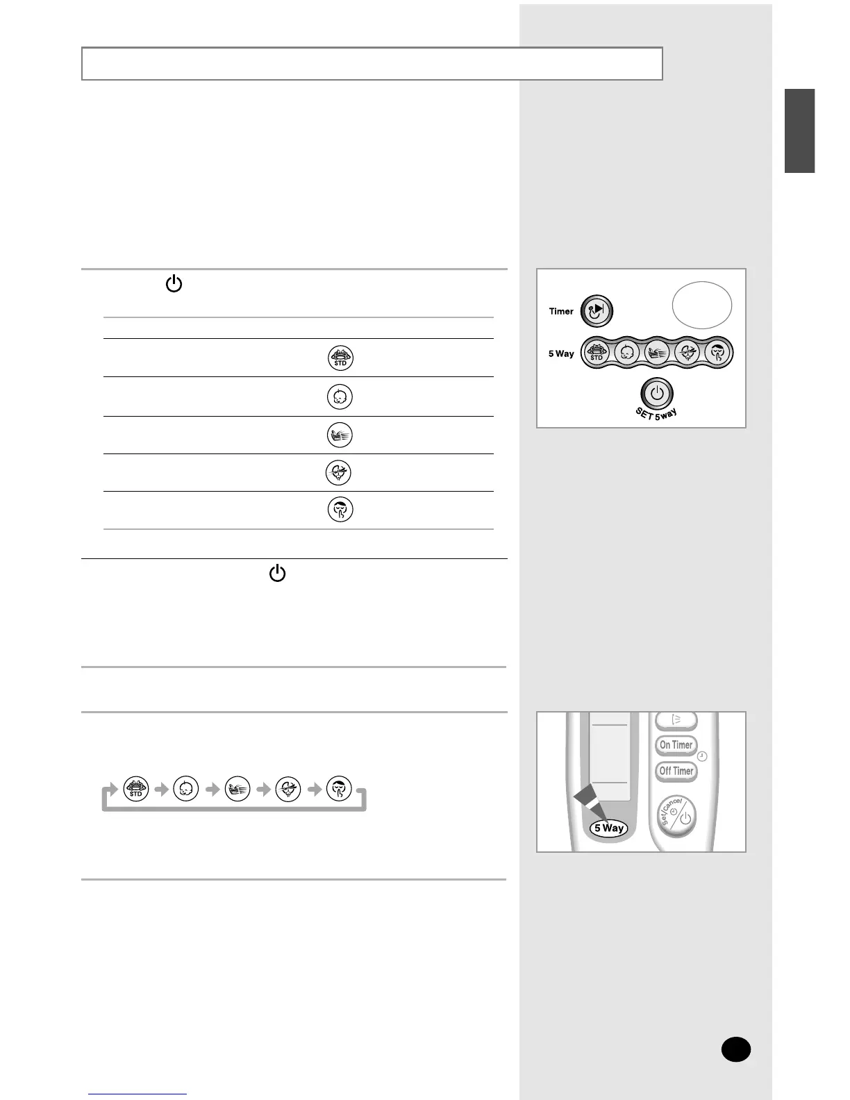 You can select the 5 Way function with operating mode of the air conditioner for