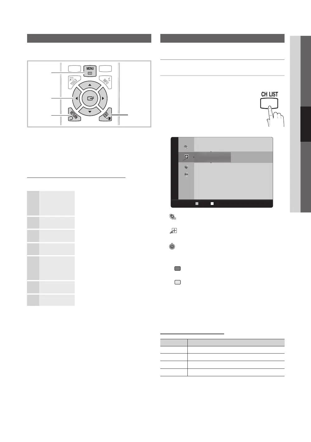 → Channel → Channel List → ENTER