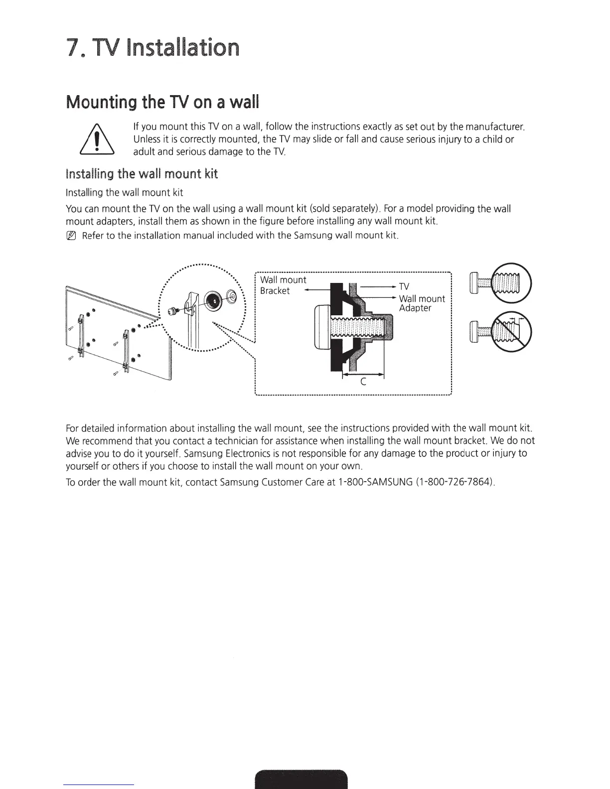 order the wall mount kit, contact Samsung Customer