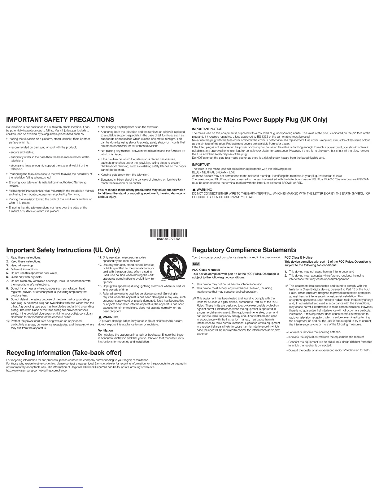 IMPORTANT SAFETY PRECAUTIONS