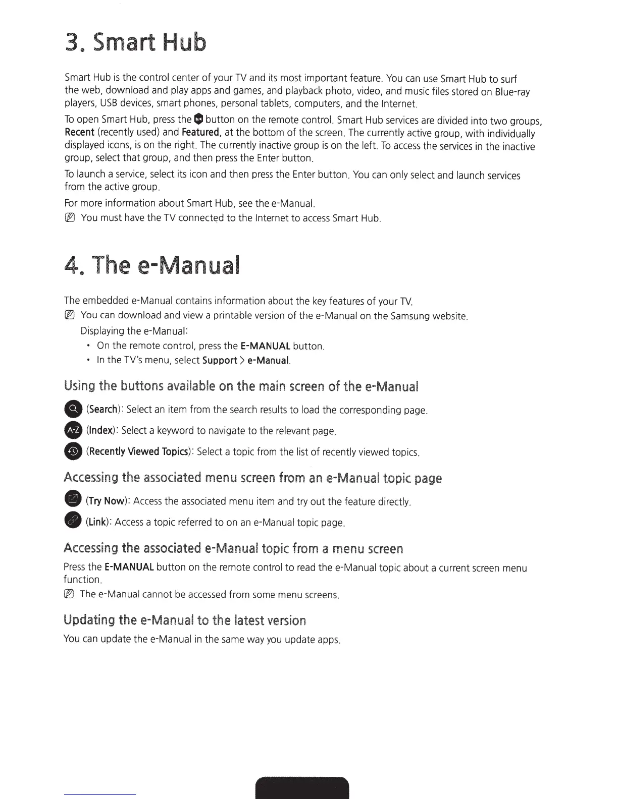 Samsung UN65JU650D - Smart Hub and e-Manual; Navigating Smart Hub Services; e-Manual Navigation and Updates