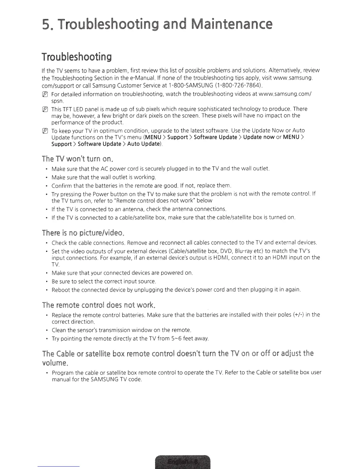 For detailed information on troubleshooting, watch the troubleshooting videos at www.samsung.