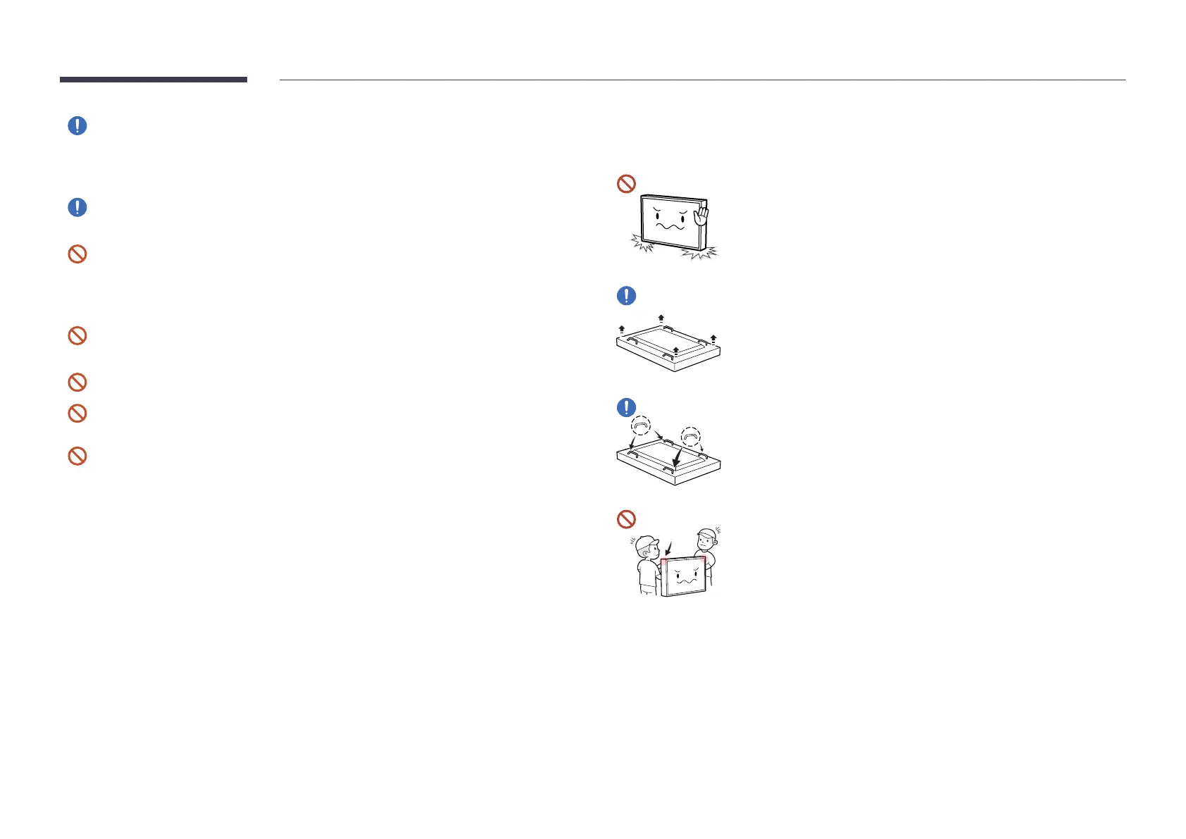 Do not stand the product as shown in the image. The panel is fragile