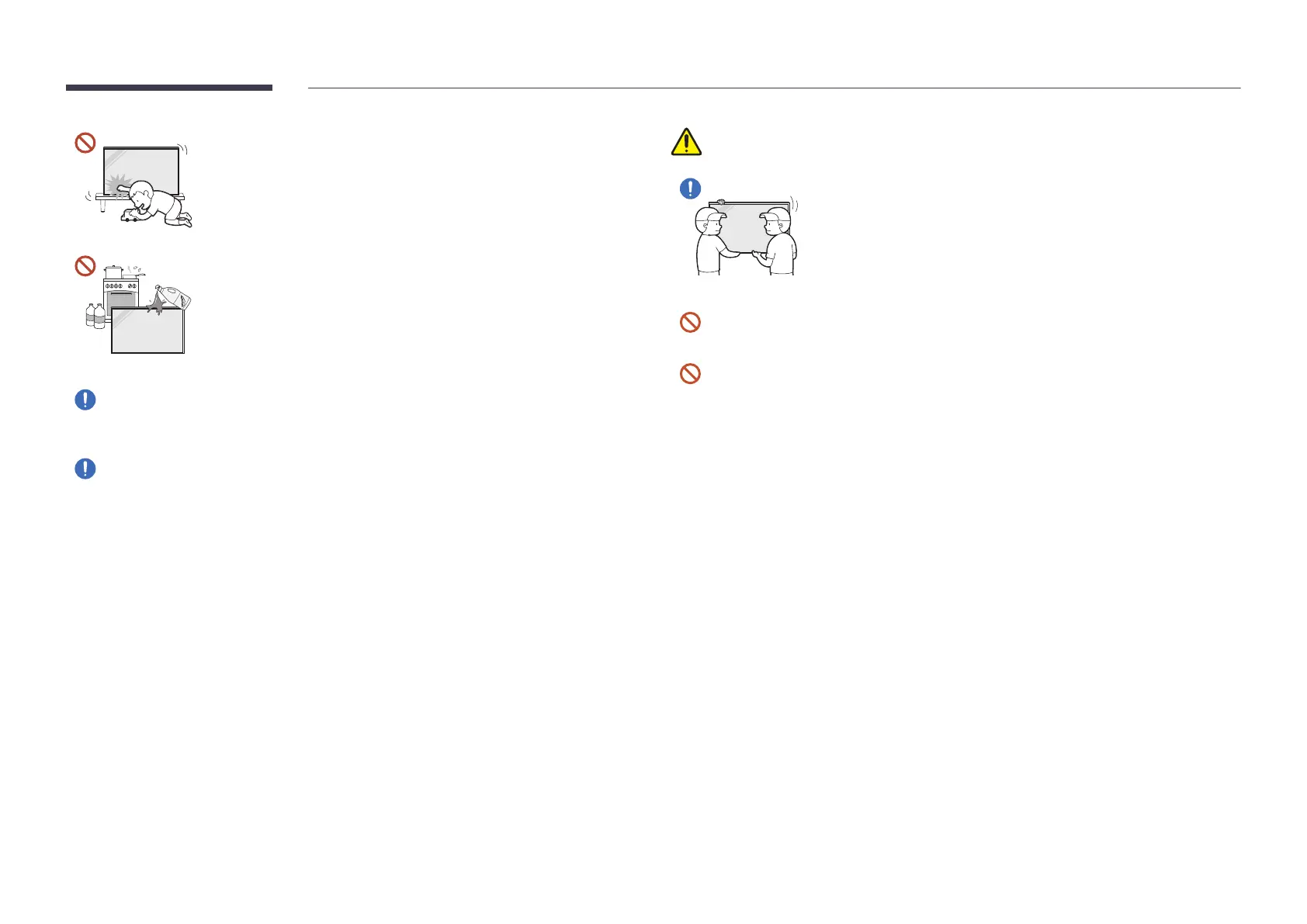 When lifting and moving the product, do not touch the screen display,