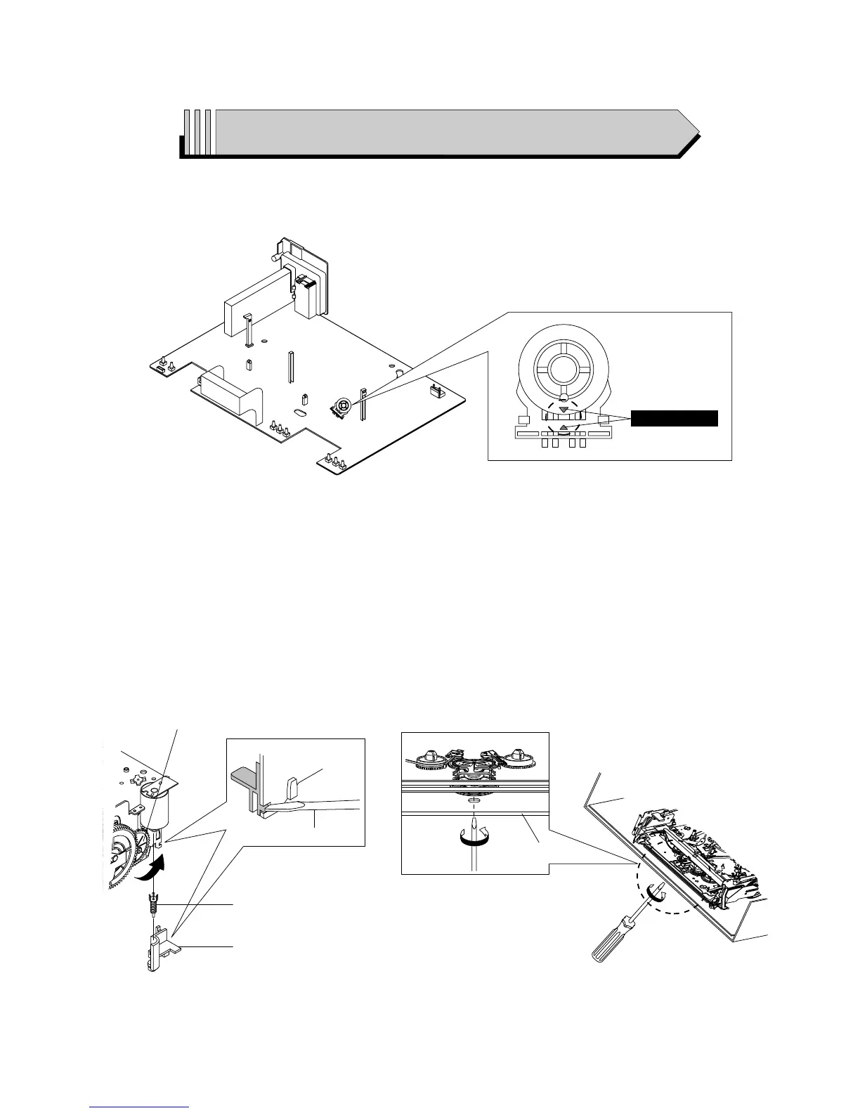 4) Rotate Gear Worm Wheel ˇ counterclockwise using screw driver again up to the state of eject mode and then pick out the tape.
