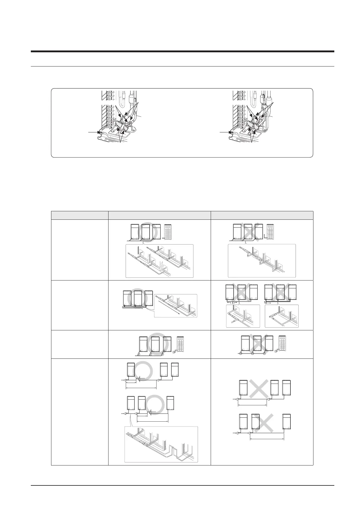 • Height of the connection pipe should be same or lower than the ones connected to the outdoor units.